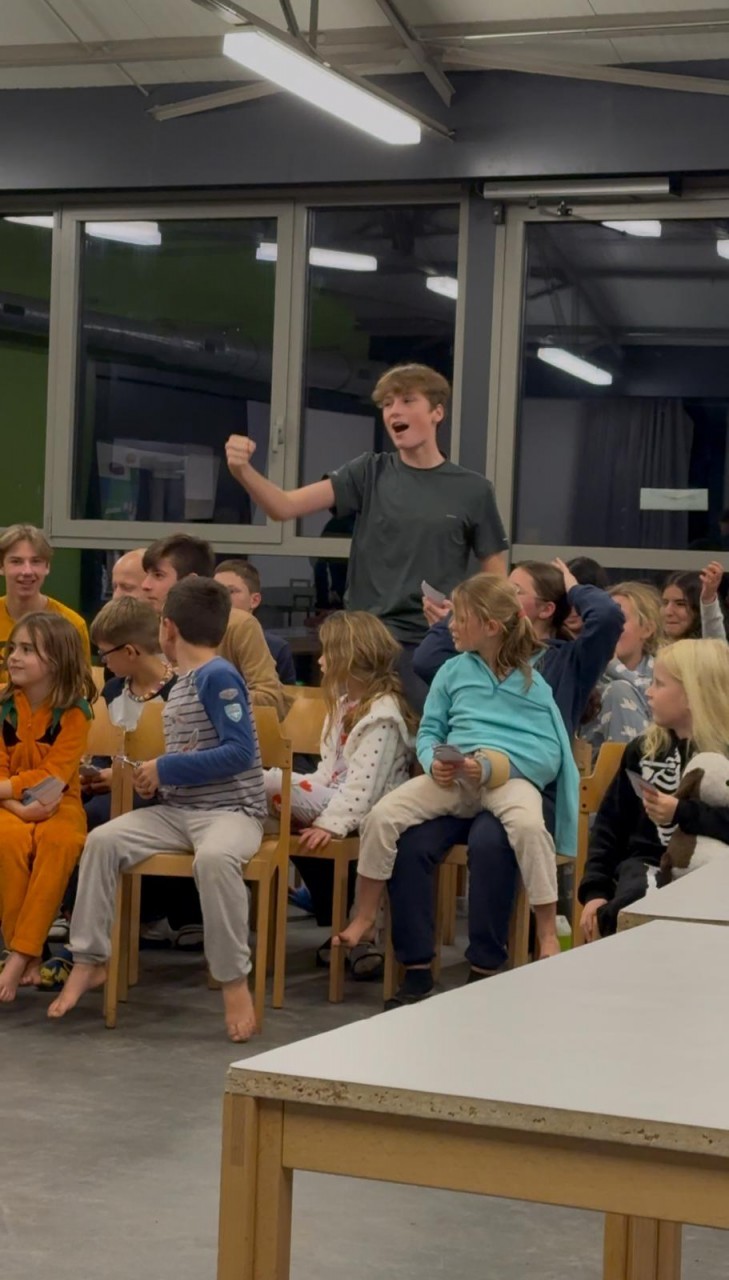 Na het vieruurtje met ijsjes werd het tijd voor “één tegen allen.” Hierbij moesten de kinderen in verschillende groepen samenwerken om verschillende uitdagingen te volbrengen en punten te scoren. Het bleek niet gemakkelijk om 2 minuten te vertellen zonder Euh te zeggen, of de botten van leider Marc uit te krijgen. Opdrachten zoals de groepsselfie en het uitschelden van een pollepel lukten beter. Het kookteam verraste de kinderen ’s avonds met een “vol-au-vent” met frietjes van wereldklasse. De maaltijd was een succes, en er werd flink gesmuld door zowel kinderen als begeleiders. Na het eten leidde Marc het spel “Wedden dat?,” waarin de kinderen grappige en gekke opdrachten moesten uitvoeren en hier dan met nep geld op inzetten. De emoties laaide hoog op, net zoals de decibels tijdens de spannende opdrachten. Uiteindelijk kwamen we er achter dat Sara de beste vliegenvanger is, Lucy de grootste stinkvoeten heeft, Rik de beste aap is, Mariama en Alexis een goed estafetteteam zijn, Ada en Jozefien echte slaapzak buddies zijn, Kautar de beste conditie heeft, Seppe de beste bottle flipper is, dat Stan nog een hockey carrière mag ambiëren en nog veel meer. Yennes en Maxim waren halverwege blut, en leerden dus de weer keerzijde van het gokken. Na een avond vol lachen en spanning ging iedereen moe maar voldaan slapen.